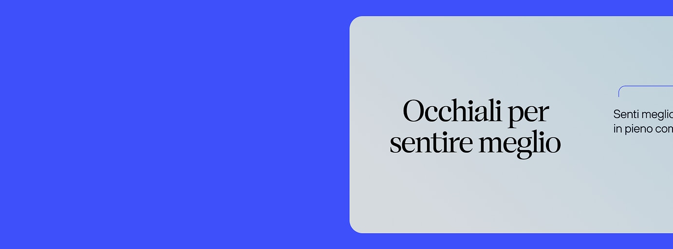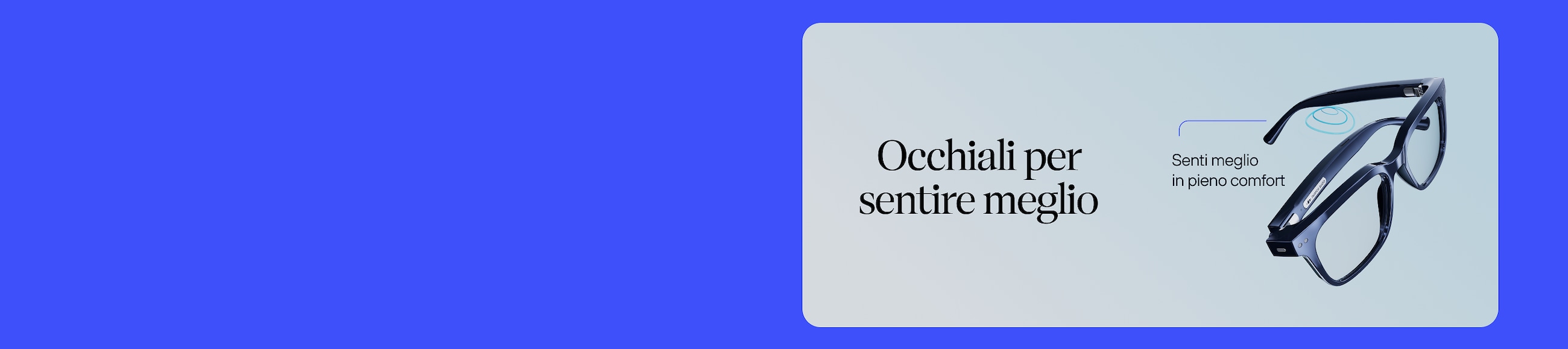*Nuance Audio è un dispositivo acustico a conduzione aerea integrato negli occhiali, compatibile con qualsiasi tipo di lente. Amplifica il suono per adulti con perdita uditiva percepita da lieve a moderata. È un dispositivo medico CE, leggere attentamente avvertenze e istruzioni per l’uso. Approvazione ministeriale 0078638 del 28/08/2025. Promozione valida dal 10.11 al 2.12. Non cumulabile con altri coupon, sconti, offerte o promozioni. Valida solo nei punti vendita aderenti all’iniziativa.